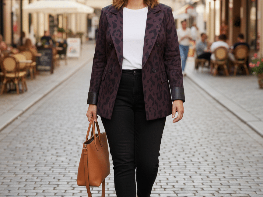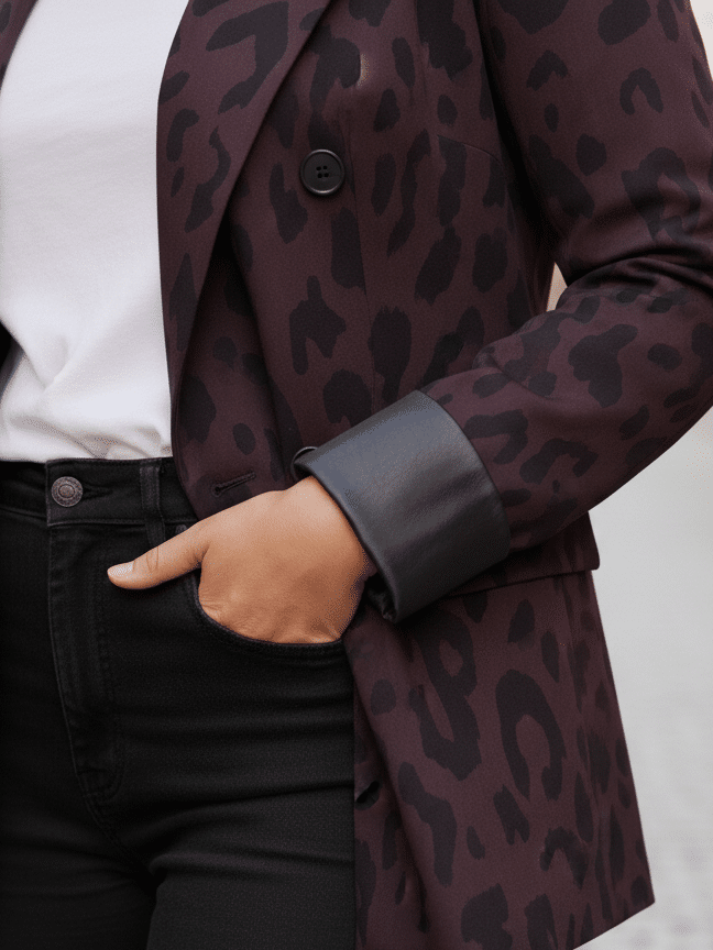 Blazer Femme Imprimé Léopard avec Manches Simili Cuir –
