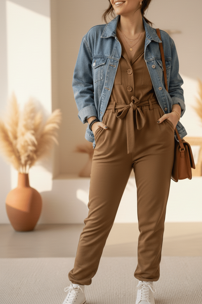 La combinaison camel qui structure la silhouette en un clin d’œil. — Chic, fluide et confortable, elle habille instantanément sans en faire trop.