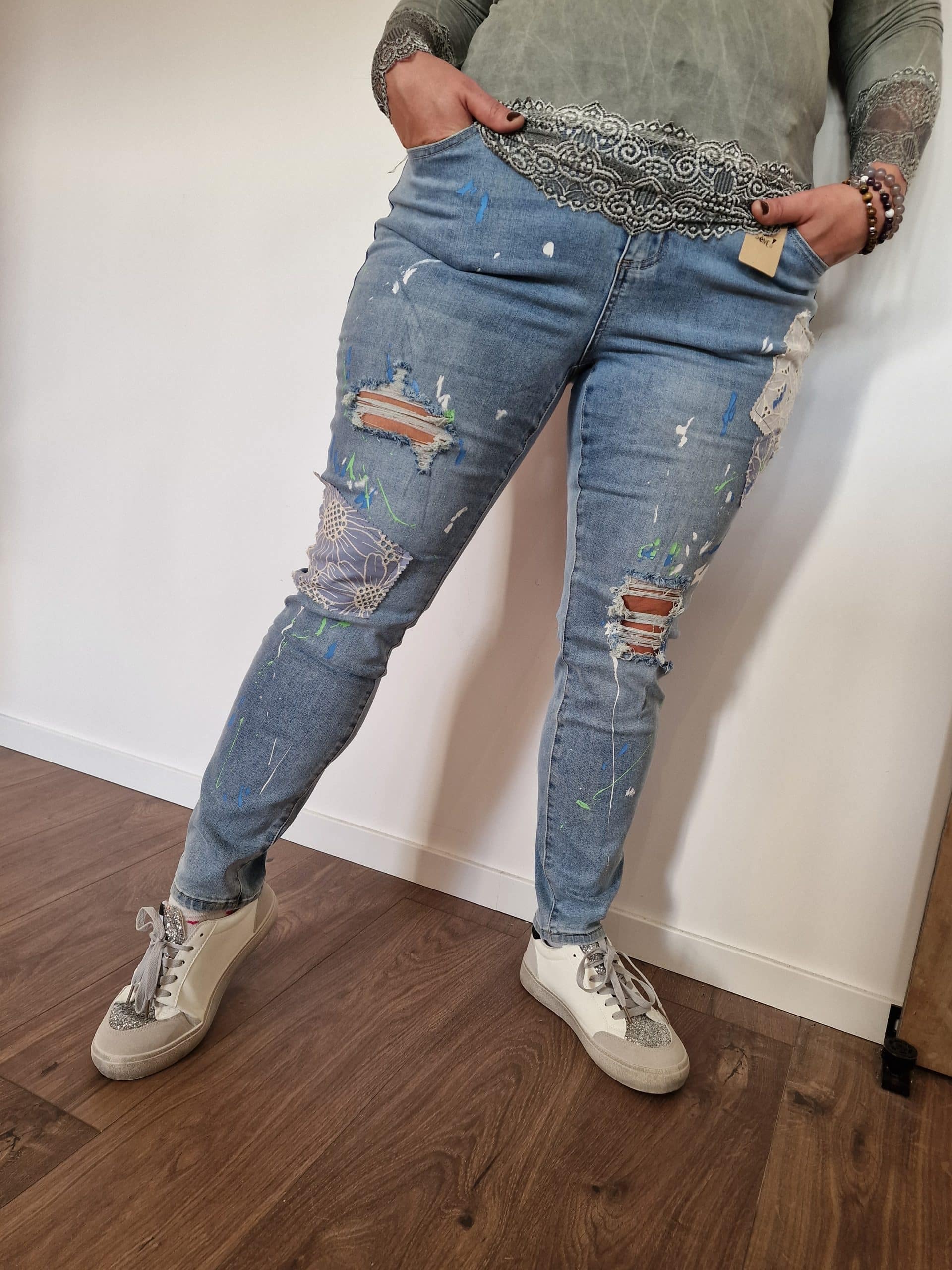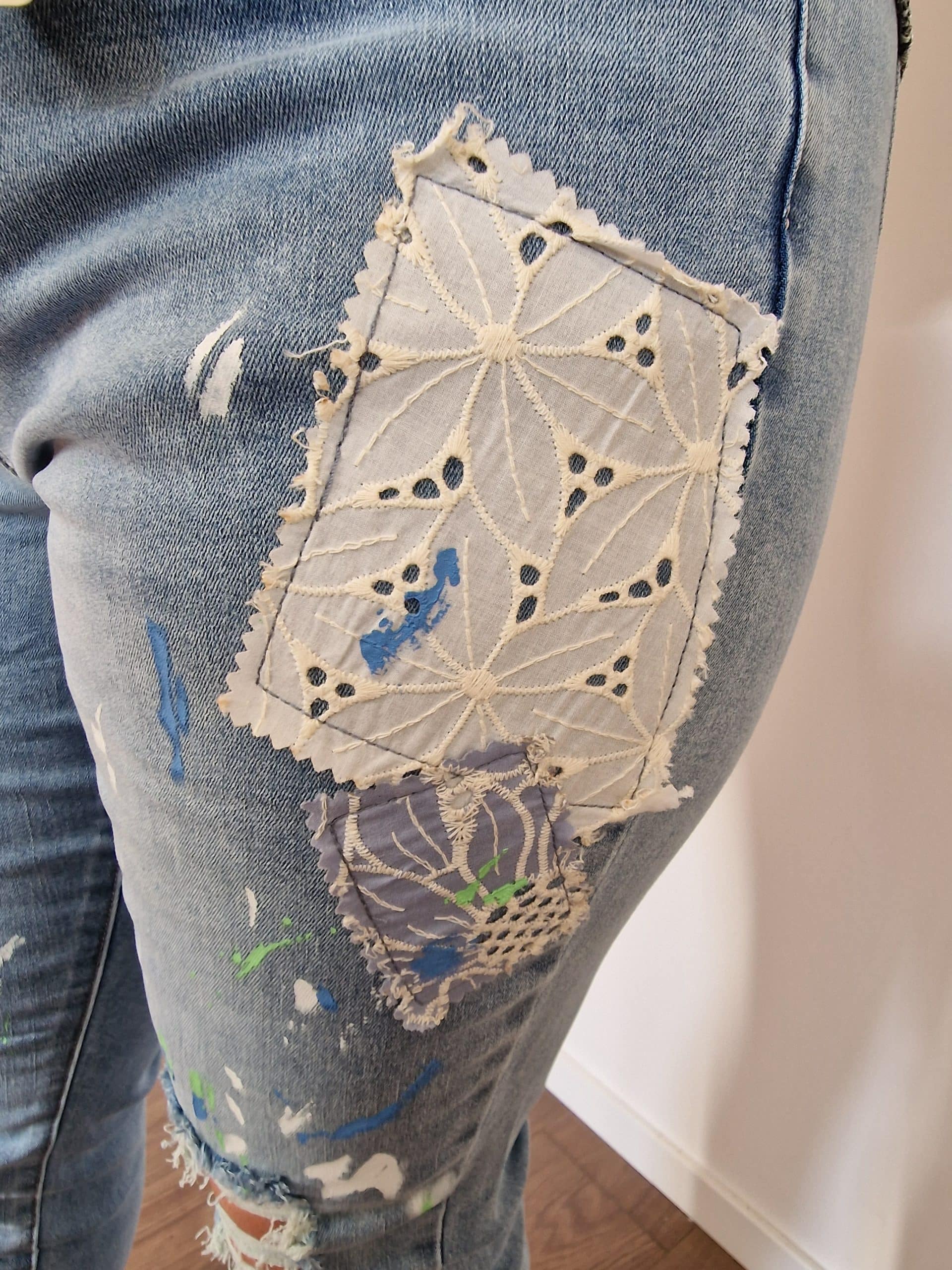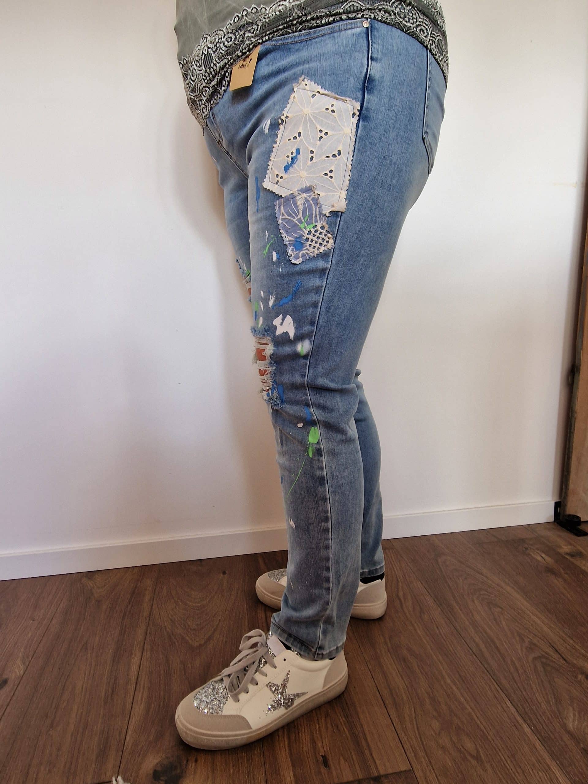 Jean patchwork effet peinture