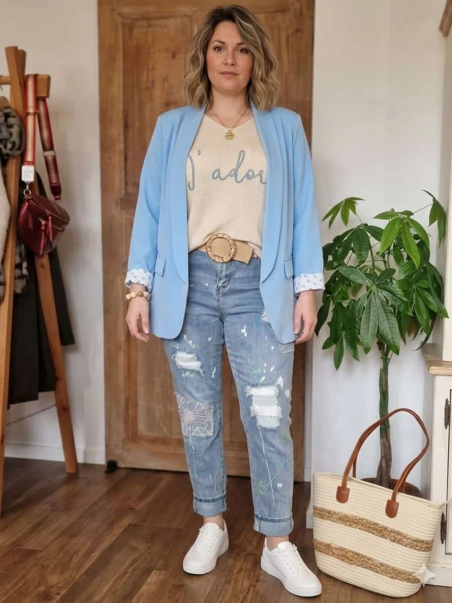 Un blazer, une blouse fluide ou un pull léger suffisent pour créer un look stylé sans en faire trop.