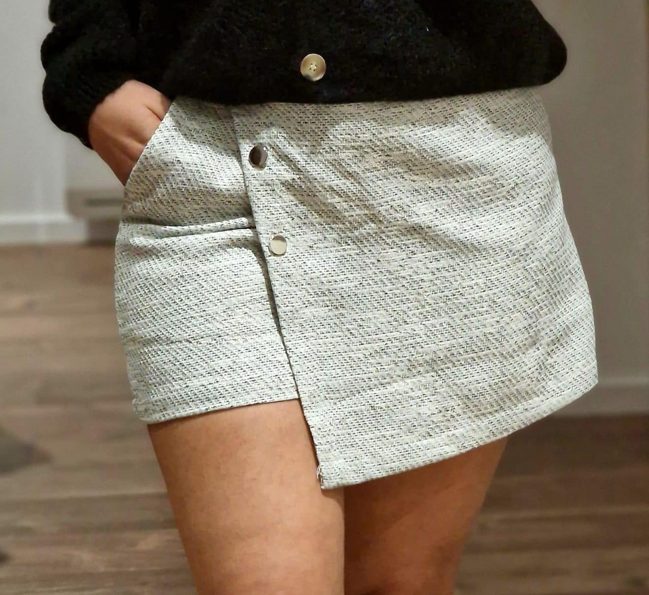 La Jupe-short Flora en gris chiné, c’est l’alliance parfaite entre effet jupe chic et liberté de mouvement.
