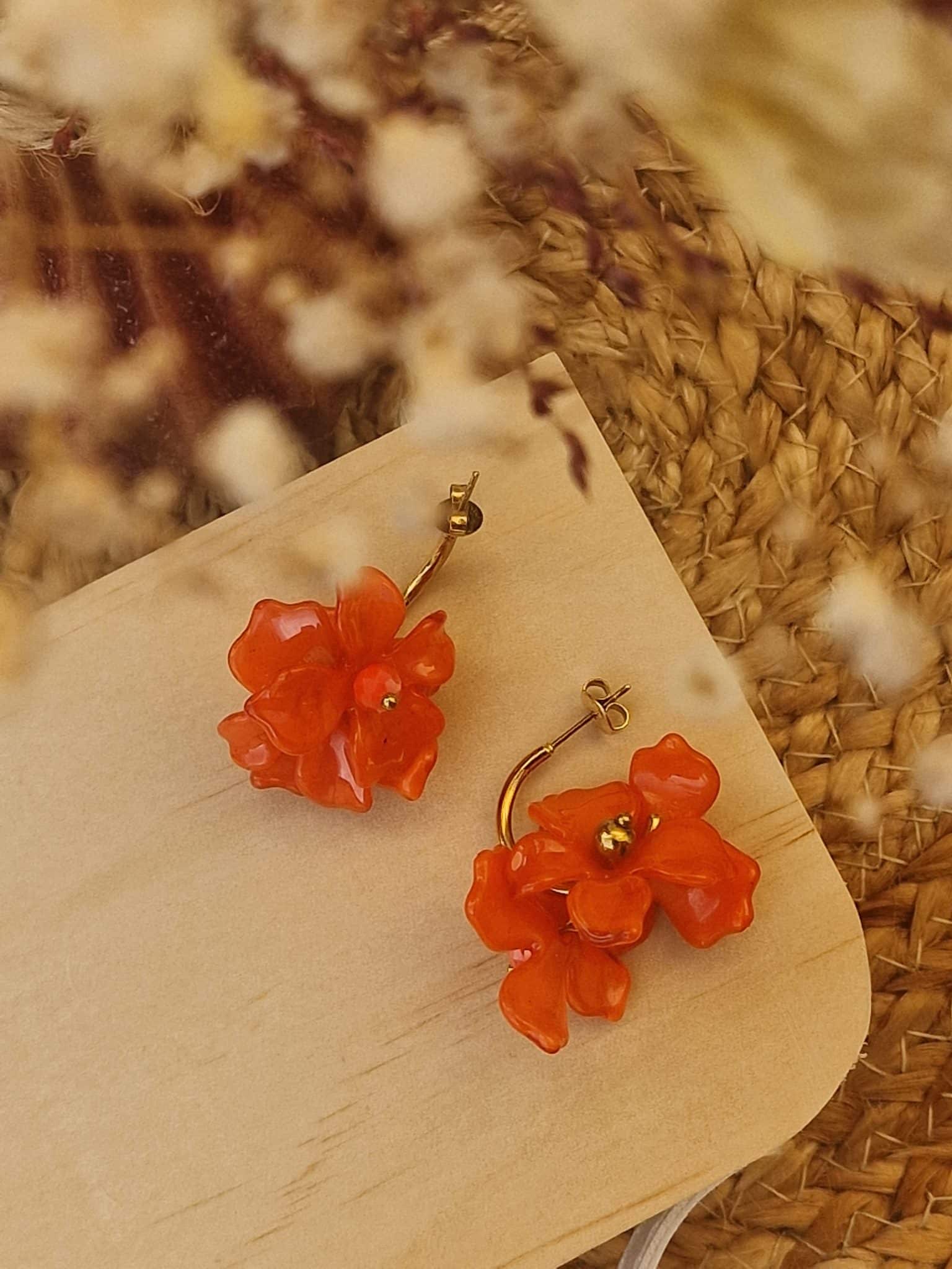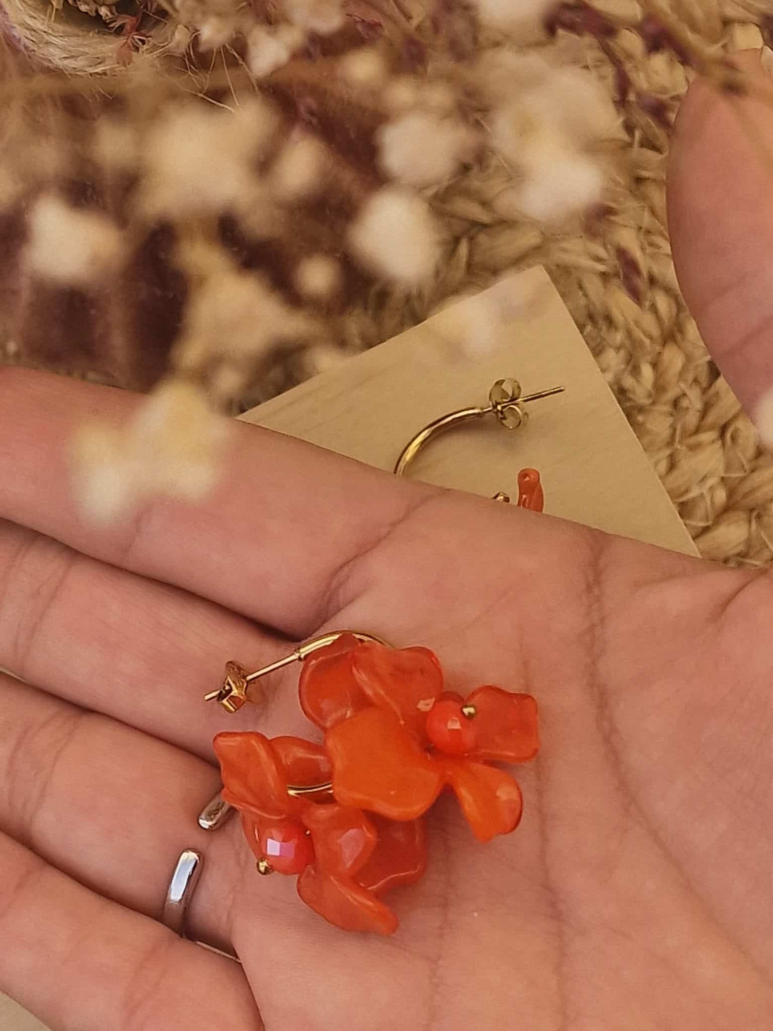 Ces demi-créoles dorées sont délicatement composées de trois fleurs rose pâle : deux fleurs latérales et une fleur centrale qui apportent relief et douceur au bijou. Une pièce lumineuse et féminine qui sublime facilement vos tenues du quotidien.