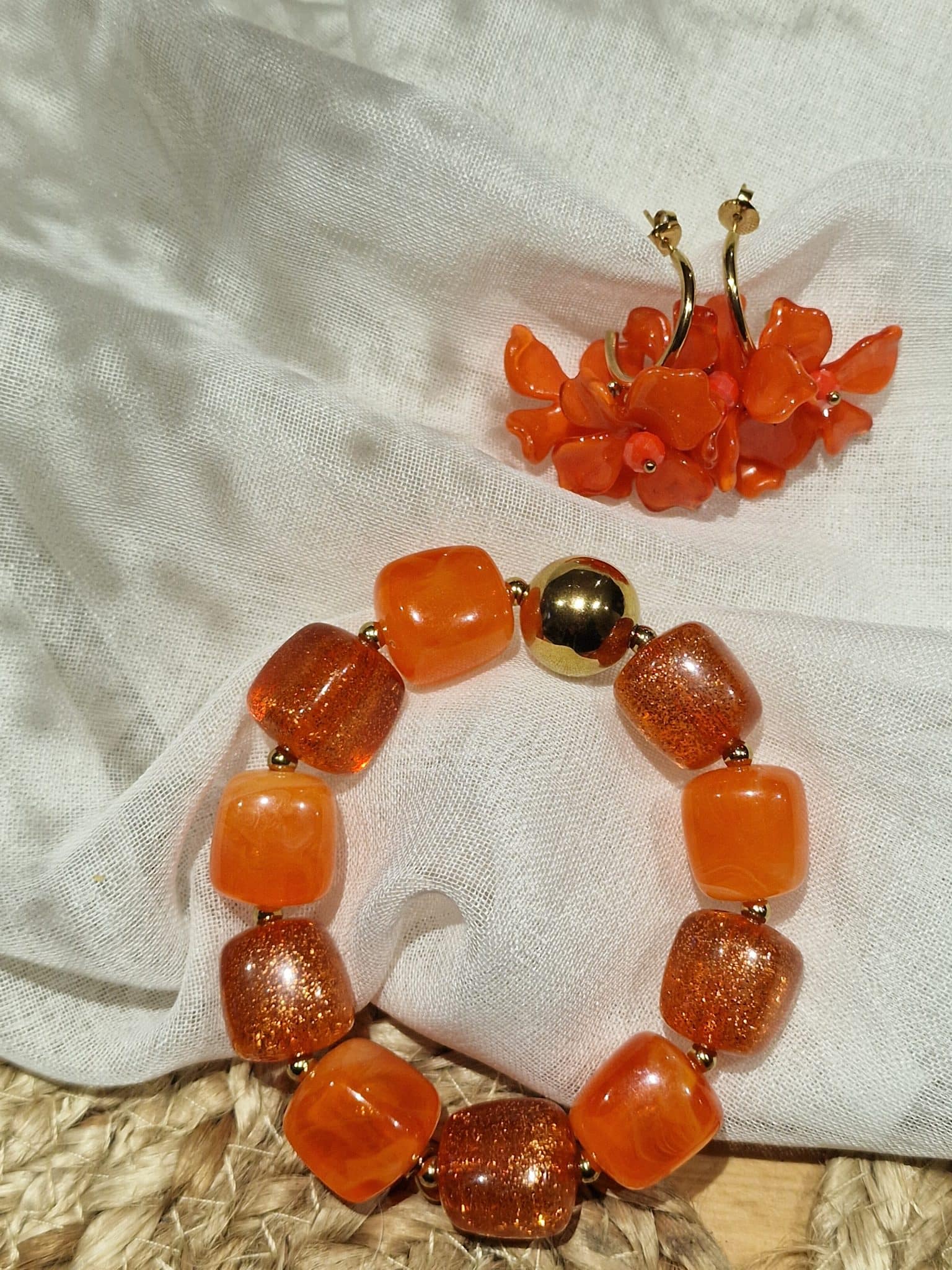 Les boucles Elia se marient à merveille avec le le bracelet perles cube de la collection Solea pour créer un ensemble harmonieux, bohème et très lumineux.