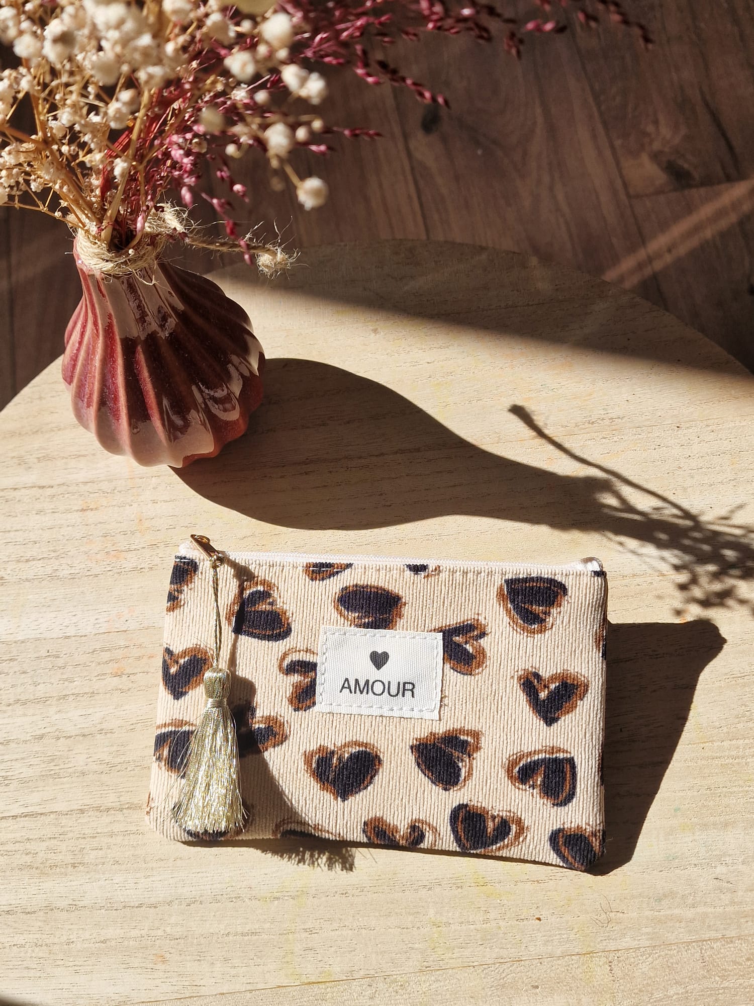 La pochette Hanaé coeur noir et beige est le petit accessoire pratique et stylé à glisser partout.