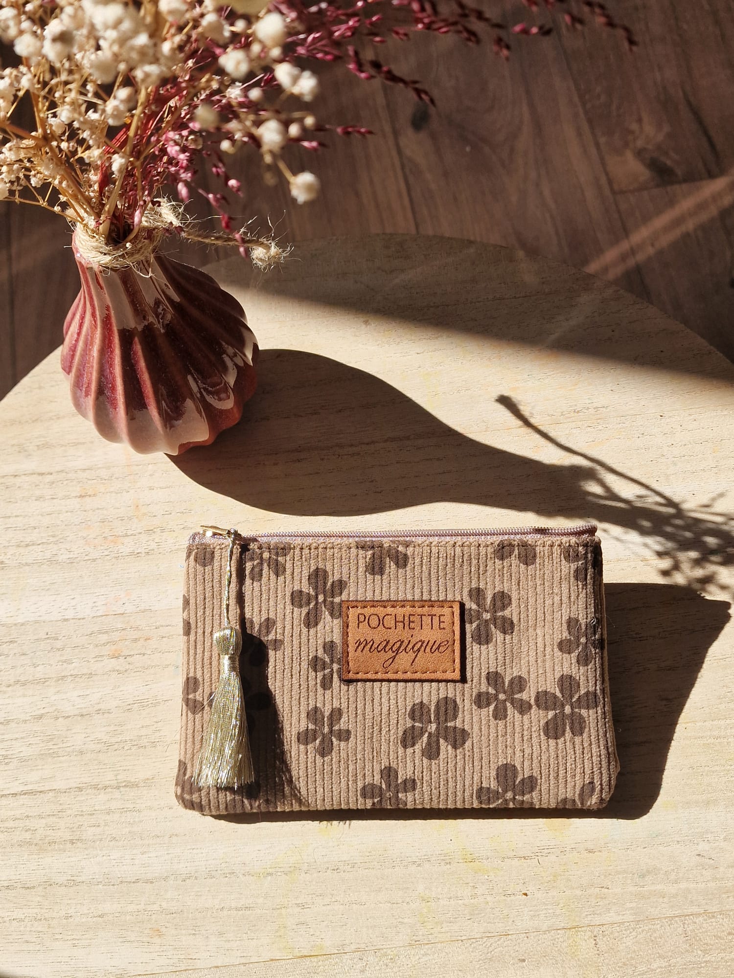 La pochette Hanaë marron flowers est le petit accessoire pratique et stylé à glisser partout.