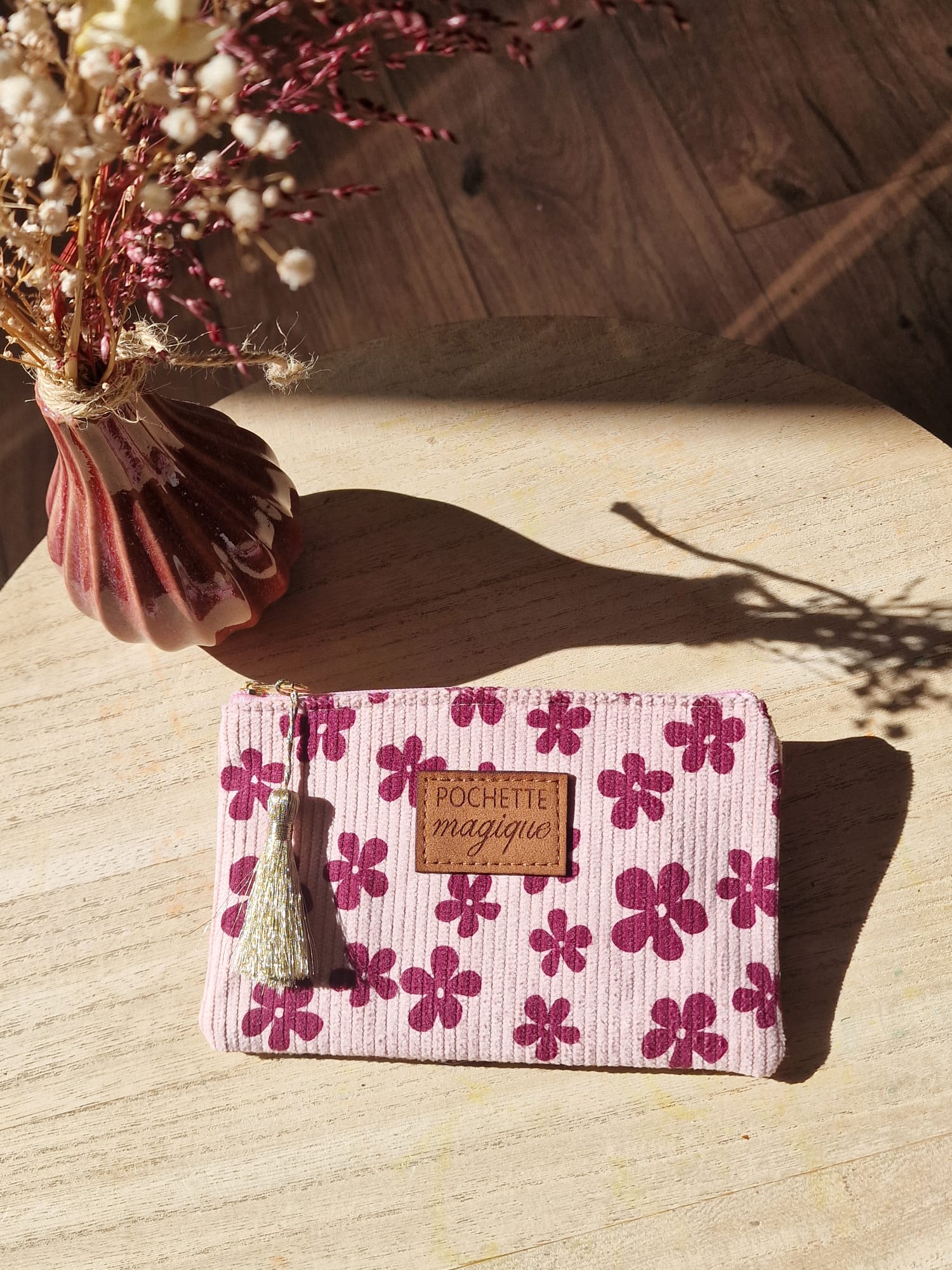 La pochette Hanaé  rose flowers est le petit accessoire pratique et stylé à glisser partout.